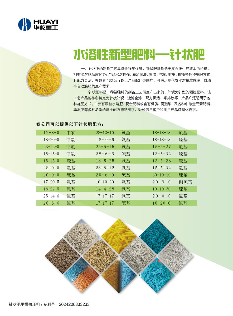 針狀肥料是一種經(jīng)獨(dú)特的制備工藝而生產(chǎn)出來的、外觀為針型的顆粒肥料。該工藝產(chǎn)品的核心特點(diǎn)為針狀外觀、速溶全溶、配方靈活、零排放等,產(chǎn)品廣泛適用于各種施肥方式,主要有顆粒水溶肥、復(fù)合肥料或含有機(jī)質(zhì)、腐殖酸、及各種中微量元素肥料、單質(zhì)肥等多種品系的測土配方施肥需求,輕松滿足客戶和用戶產(chǎn)品訂制化需求。